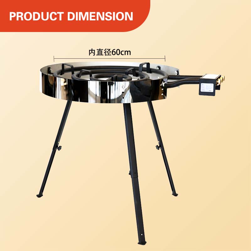 Gas Burners come in two sizes – 40 cm and 60 cm. The surface is heat resistant black powder coated.They heats up rapidly and the power is easy to adjust. Heavy pans are no problem, as the burners are sturdy, legs strong and made of high quality materials. The legs can be longer or shorter.The gas burner is ideal for griddle pans and suitable for the outdoor cooking. Our gas stoves are safe, energy efficient and leak free.